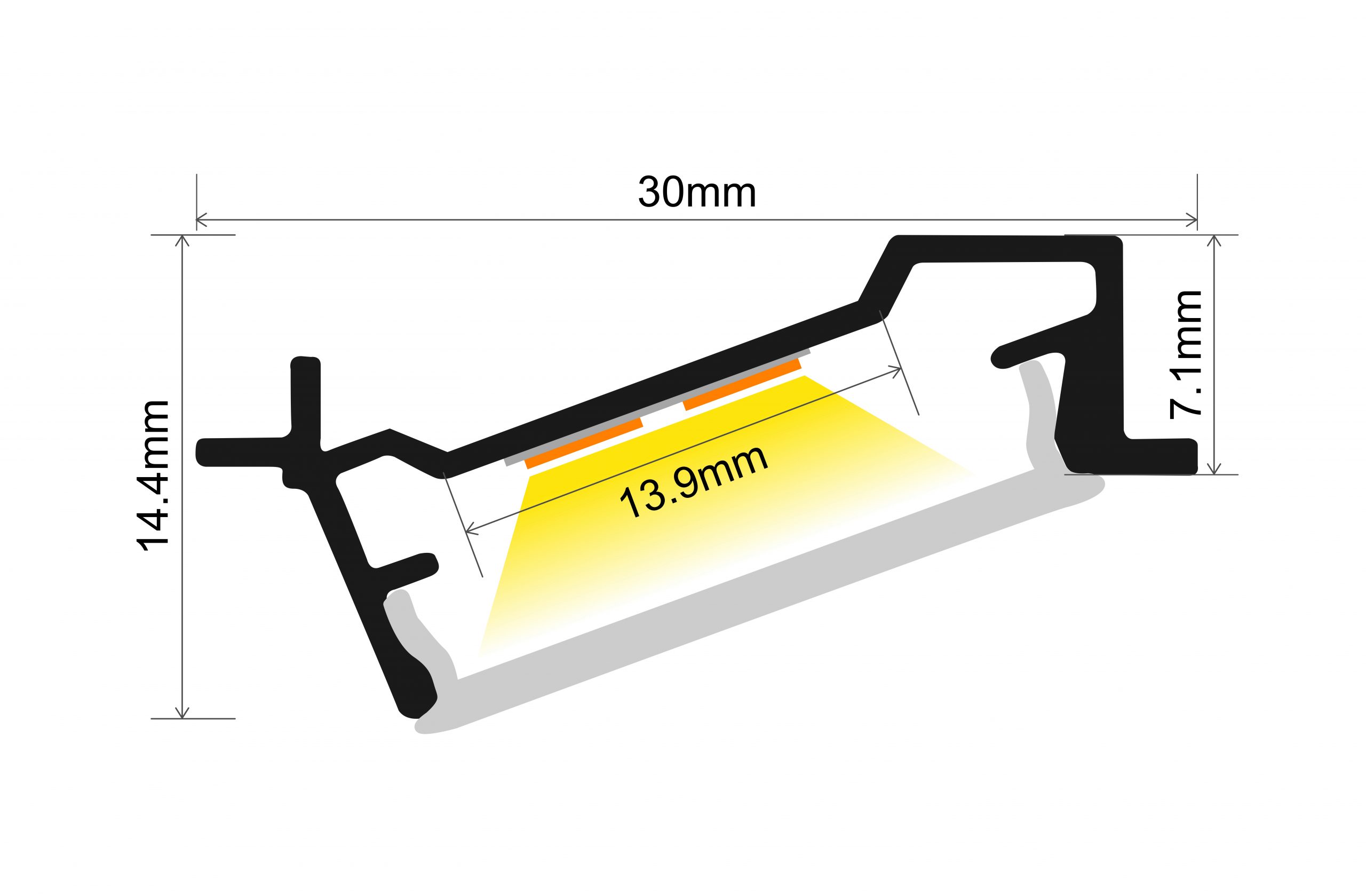 PROFILE ALUMINIUM 70 DEGREE RECESSED 2M FROSTED DIFFUSER INCLUDE 2 ENDCAPS