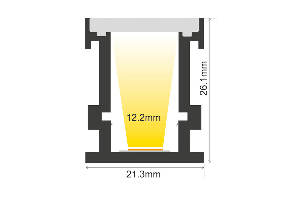 PROFILE ALUMINIUM RECESSED 2M FROSTED DIFFUSER 21.3 X 26.1MM INCLUDE 2 ENDCAPS