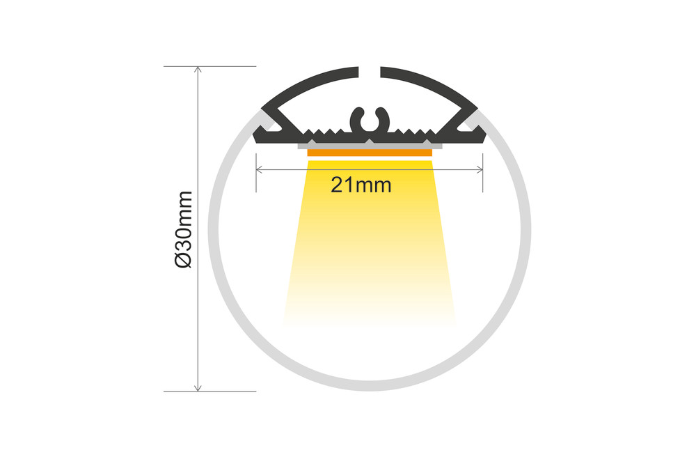 PROFILE ALUMINIUM ROUND 2M FROSTED DIFFUSER 30MM DIA INCLUDE 2 ENDCAPS 2 SCREWS AND 2 SUSPENSION KITS