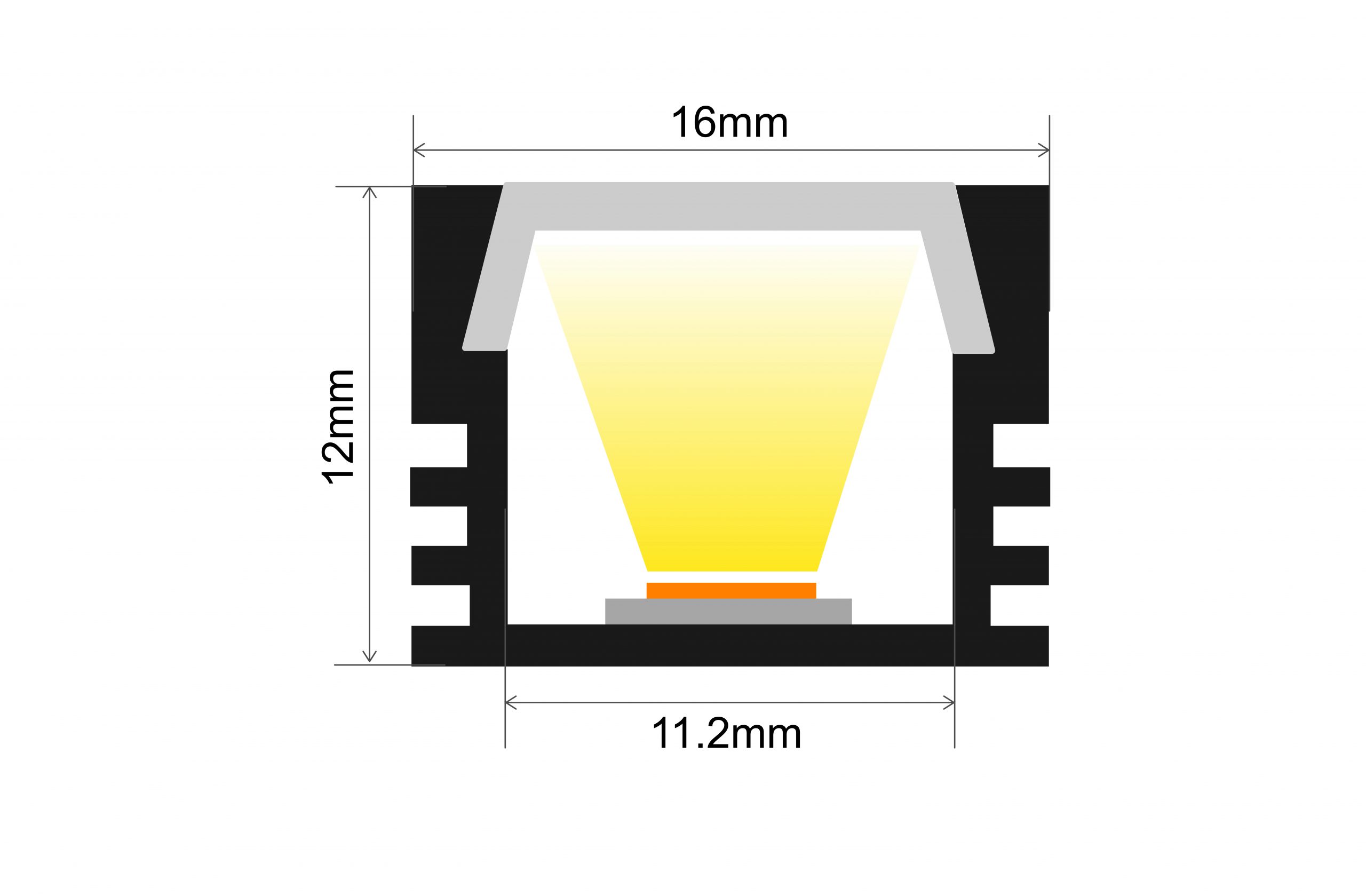 PROFILE ALUMINIUM SURFACE MOUNT 2M FROSTED DIFFUSER 15.2 X 6MM End cap and mounting bracket are sold separately